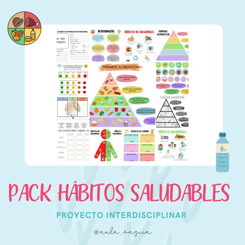 - Carteles para el aula: pirámide alimenticia, hábitos saludables/no saludables.