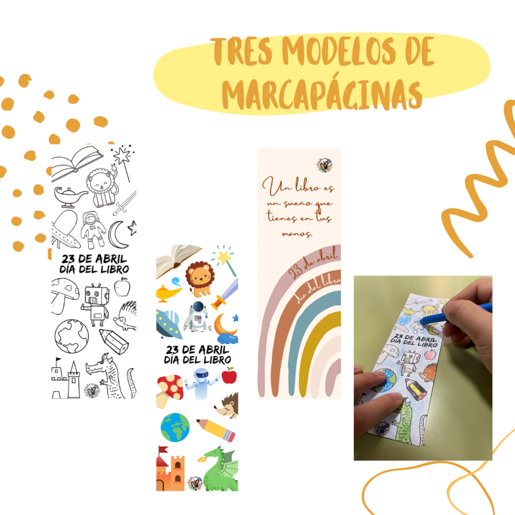 - 3 marcapáginas “Día del libro” para colorear y a color.